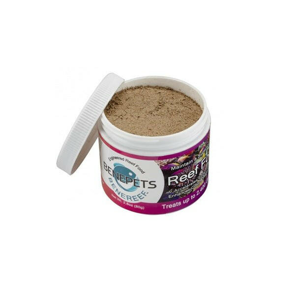 Benepets BeneReef coral and fish food is perfect for any reef tank inhabitant. Ranging from 3 to 3,000 microns in particle size, everything from SPS, LPS, Softies, and small fish will benefit from BeneReef. With smaller particles that get easily trapped by filter feeders up to larger particles that are loved by anthias, clownfish, gobies, and other smallmouth fish, you will notice an increase in growth and vitality after 30 days.  Particle Size - 3 to 3,000 microns