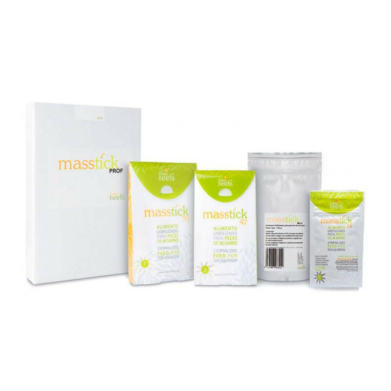 The rehydratable powder formula allows Masstick to be blended with any mollusc or crustacean pulp as well as eggs from fish, molluscs and crustaceans, artemia, mysids, copepods, rotifers and medicines that are administered orally. Once prepared and introduced into the aquarium,
