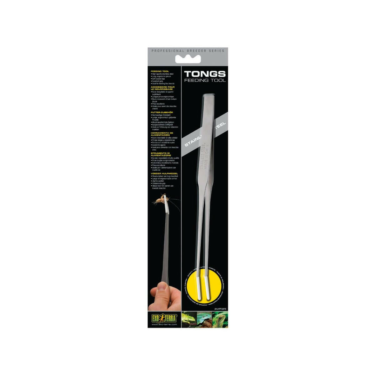 Crafted from high-quality stainless steel, Exo Terra Tongs are an excellent tool for feeding live insects to reptiles and amphibians. The long, ergonomic pincers make feeding easy and provide enough distance to prevent stress in the feeding animal, while the tips have been soft-coated to prevent mouth injury and to provide a firm grip on live feeder insects.