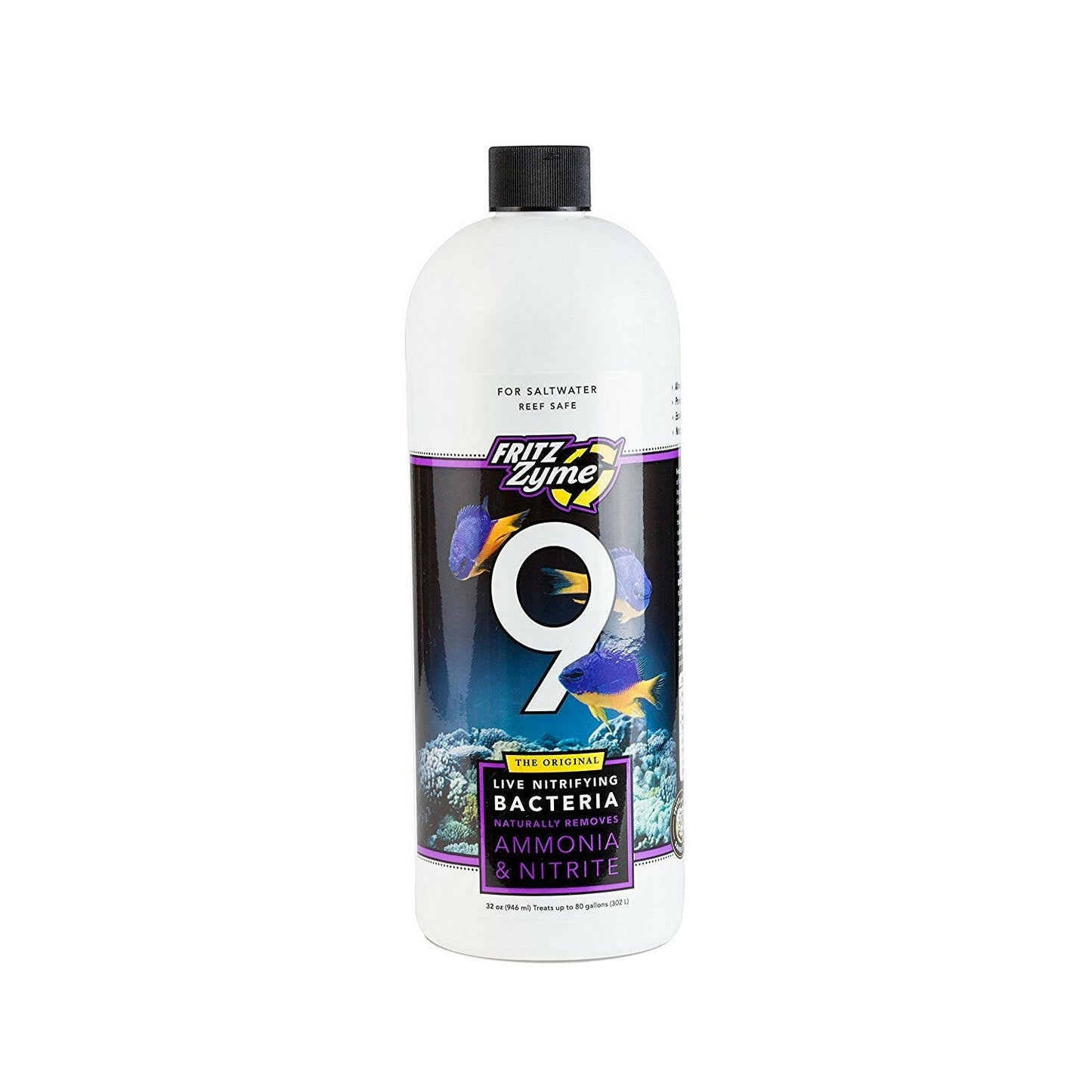FritzZyme® 9 contains saltwater-specific strains of live nitrifying bacteria proven to reduce fish loss caused by toxic ammonia and nitrite. In new aquariums, harmful levels can rise within days, while beneficial bacteria may take weeks to establish. FritzZyme® 9 delivers the proper balance of bacteria to rapidly seed biofilters, shorten the natural cycle, and support the safe, immediate addition of livestock. Fritz Industries pioneered commercial-scale cultivation of nitrifying bacteria and has maintained continuous production for over 30 years. Use in new or established marine systems whenever the biofilter needs fortification, including after water changes, aggressive cleaning, adding new livestock, medicating, or changing filter media. FritzZyme® 9 contains live, saltwater-specific species of nitrifying bacteria.