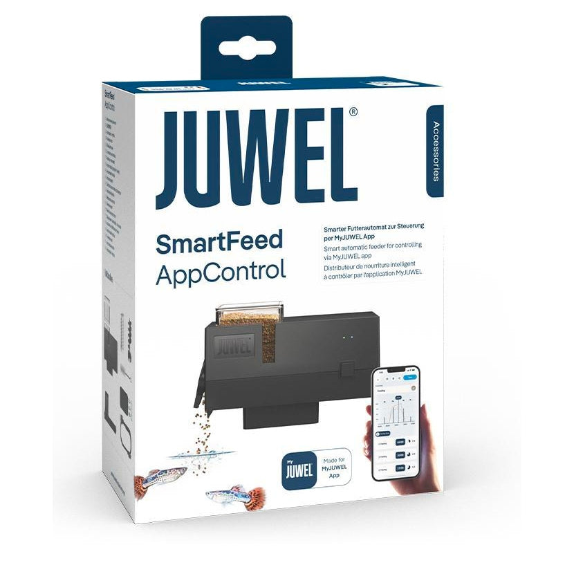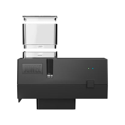 The Juwel SmartFeed AppControl is the new automatic feeder for every aquarium. It is suitable for both granulate and flake feed thanks to exchangeable conveyor screws. Using the right mounting support, it can be fitted particularly simply and quickly to any Juwel aquarium. The Juwel SmartFeed premium automatic feeder is controlled by App with smartphone or tablet using the MyJuwel App. Any number of feed a day can be programmed. The feed quantity can be dosed freely in eight levels. A large display is used for convenient programming of the feeding and facilitates legibility.The included feed chamber extension allows the feed volume to be increased. Ideal for even longer service lives.