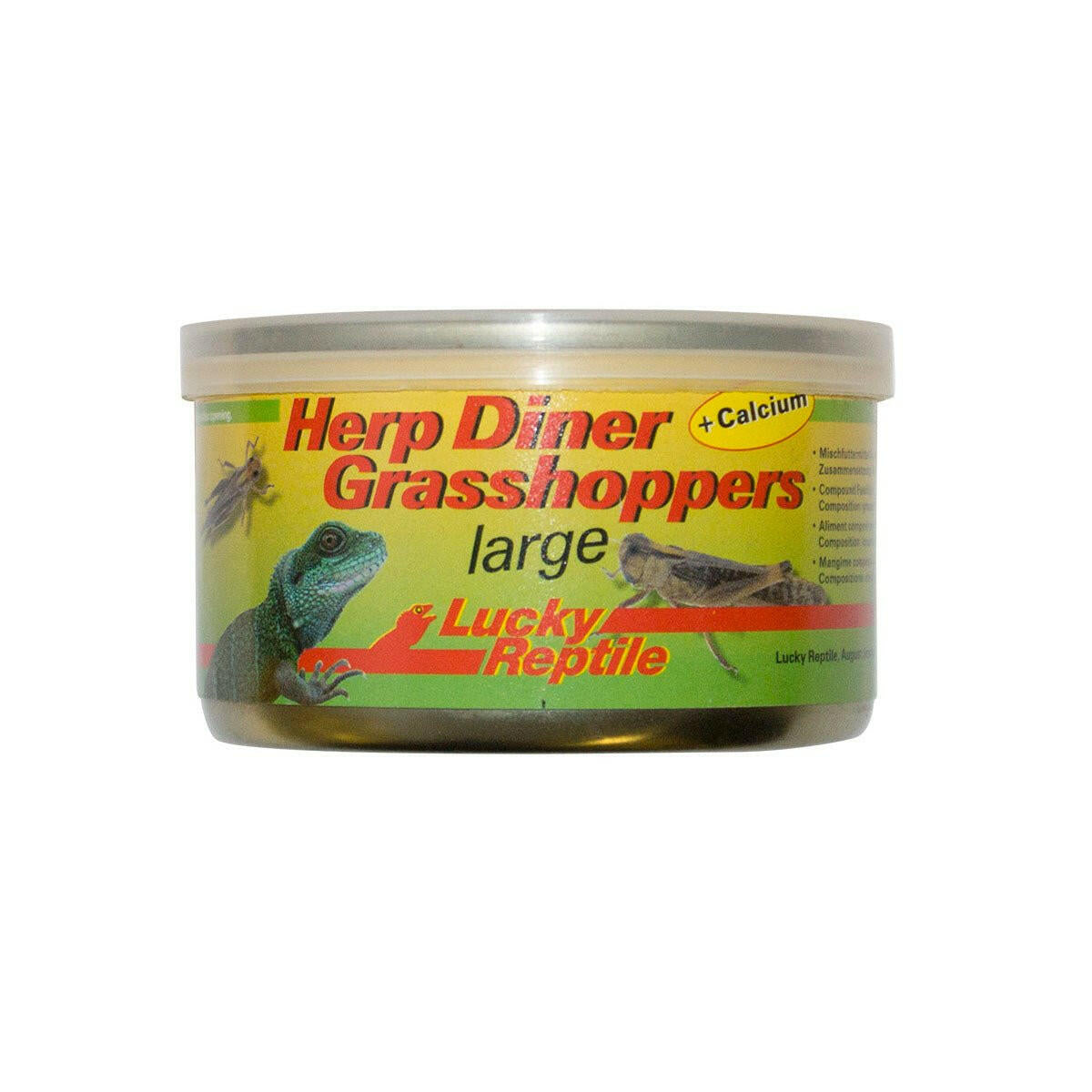 The Herp Diner Grasshoppers are cooked in the can locusts and there are 20 Large locusts per can. This special process creates flavour and taste that makes this food also interesting to animals that normally only eat live food. There are no artificial flavours or preservatives contained. However, cuttlefish bone powder has been added for an increased calcium content. The locusts are a little larger than crickets making them an excellent food for insect eating lizards (expecially bearded dragons and monitors) and birds but also water and box turtles. Especially for turtles, Herp Diner Grasshoppers are an excellent addition to the normal diet.