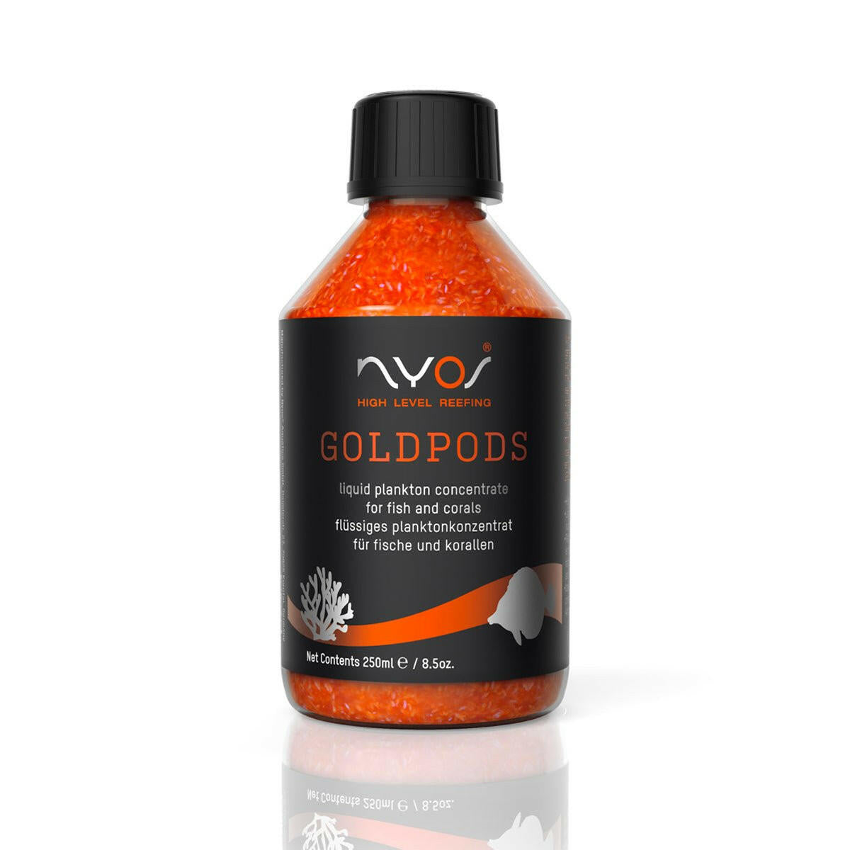 With Nyos® GOLDPODS you get a liquid zoological plankton concentrate from the pure waters of the Arctic seas, which can be used directly. GOLDPODS contain the calanoid copepods Calanus finmachicus (2 mm in size). This provides ideal nutrition for numerous sensitive seawater fish and LPS corals. High quality raw materials form the basis: