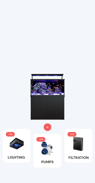 The water is filtered via a removable surface skimmer, a bespoke 225-micron filter sock, a MAX NANO protein skimmer, a media chamber containing 100g of REEF-SPEC Carbon and a bubble trap.