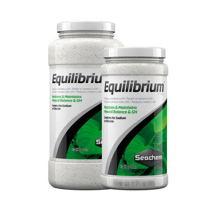 Directions: To raise mineral content or GH by 1 meq/L (3 dH), add 16 g (approximately 1 tablespoon) per 80 liters (20 gallons) of water when setting up your aquarium or during water changes. For best solubility, mix Equilibrium™ with about 1 liter (1 quart) of water before adding it to the aquarium. This mixture may cause a slight haze that typically clears within 15–30 minutes. Note that Equilibrium™ should not be used to replace evaporated water. Since dosing is based on DI or RO water, it's advisable to measure your water's hardness first and adjust accordingly. While plant preferences vary, a general guideline is maintaining 1–2 meq/L (3–6 dH) GH and matching the carbonate hardness (KH) within the same range for optimal plant growth.