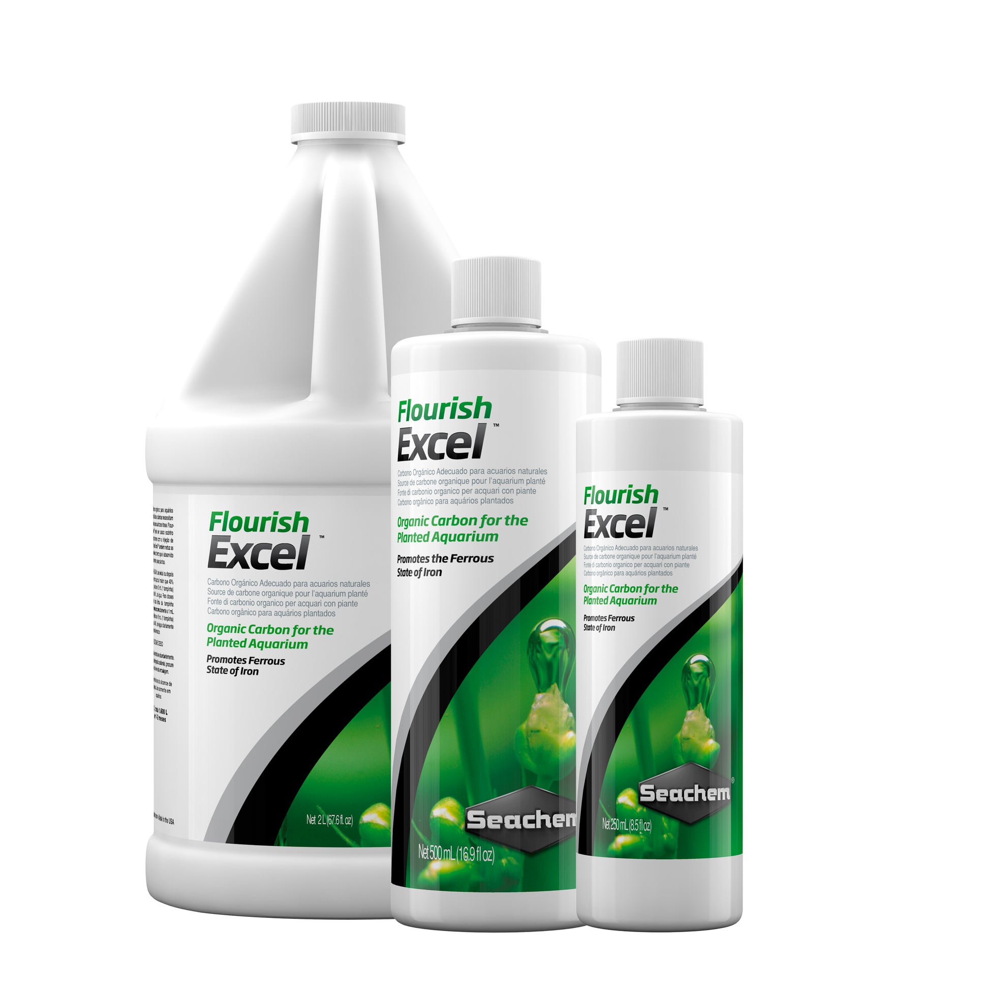 In addition to its carbon benefits, Flourish Excel™ exhibits iron-reducing properties that promote the ferrous state of iron (Fe+2), which is more readily absorbed by plants compared to the ferric form (Fe+3). This feature supports optimal nutrient uptake and robust plant development. Formulated without phosphate or nitrate, Flourish Excel™ integrates seamlessly with Seachem’s full range of plant care products and is especially recommended for use with Flourite™ and Onyx Sand™ substrates.