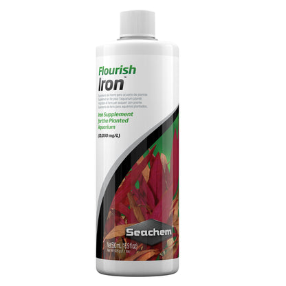 Flourish Iron™ is a highly concentrated (10,000 mg/L) ferrous iron (Fe+2) gluconate supplement designed to meet the elevated iron needs of aquatic plants. Ideal for use when standard dosing of general plant conditioners falls short or when signs of iron deficiency emerge—such as short, slender stems or yellowing between leaf veins—this supplement provides iron in the ferrous form, which plants readily absorb and utilize.