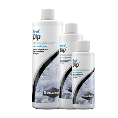 Reef Dip contains elemental iodine complexed to a protective slime coat designed for the safe and gentle disinfection of corals. This advanced formulation is effective against bacteria, fungus, and protozoans, making it ideal for both prophylactic use and treatment of diseased specimens. It is safe for use with a wide variety of marine life, including stony and soft corals, anemones, and polyps.