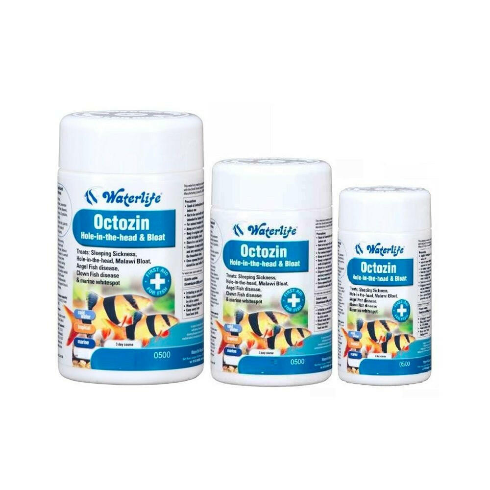 OCTOZIN is a treatment for internal parasites such as those which cause Sleeping Sickness, Hole - In - The - Head, Seawater Angelfish and Clownfish Disease, Malawi Bloat Disease and also early stages of Dropsy. OCTOZIN may also be used to treat Whitespot in seawater aquaria where CUPRAZIN cannot be used.