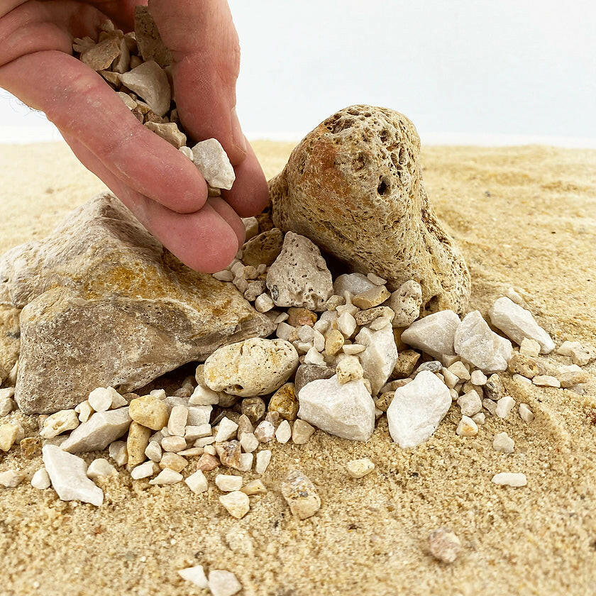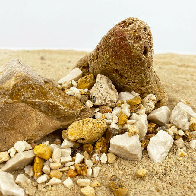 Pale Accents is a sophisticated assortment of miniature pale stones, selectively sourced to align with the understated tones of whitish stones like White Adder Boulders, Hole Stone and other similar types. Drawing inspiration from the soft hues of chalk cliffs and the gentle patterns found in pale geological formations, these accents offer a significant enhancement in detail and a whisper of serene elegance to your nature-inspired settings. They bring a sense of refined beauty and time-worn grace. Perfect for adding a nuanced visual depth and a touch of authenticity to your aquarium, paludarium, or terrarium, Pale Accents are an essential addition for any hobbyist aiming to create a subtle, naturally inspired environment.