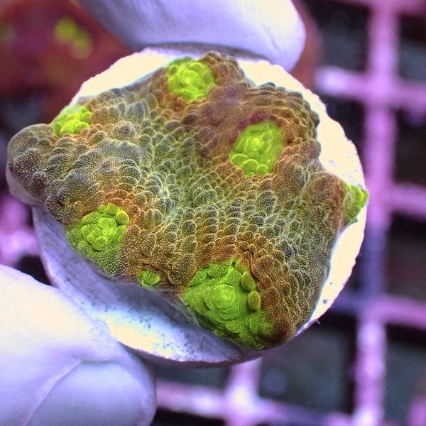 This is the actual coral you will receive, it is around 3cm. It is important to maintain dKH, Calcium & Magnesium levels in order for this coral to thrive