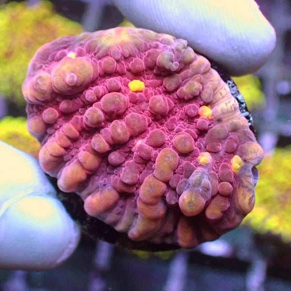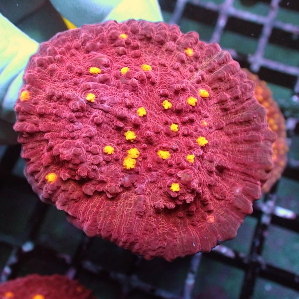 Chalice Corals are almost like the lower light loving, aggressive LPS version of Montipora. They come in a huge range of colours and patterns that can be eye poppingly bright and grow into large plates. They tend to be collected from deeper waters so wild colonies prefer a shadier spot in aquariums. As with all LPS it is extremely important not to light shock your new Chalice. If your tank has particularly strong lighting it is worth ensuring that you acclimate the coral to the light slowly over a period of weeks/months. Always start them off in a shady spot, out of direct lighting to avoid bleaching.